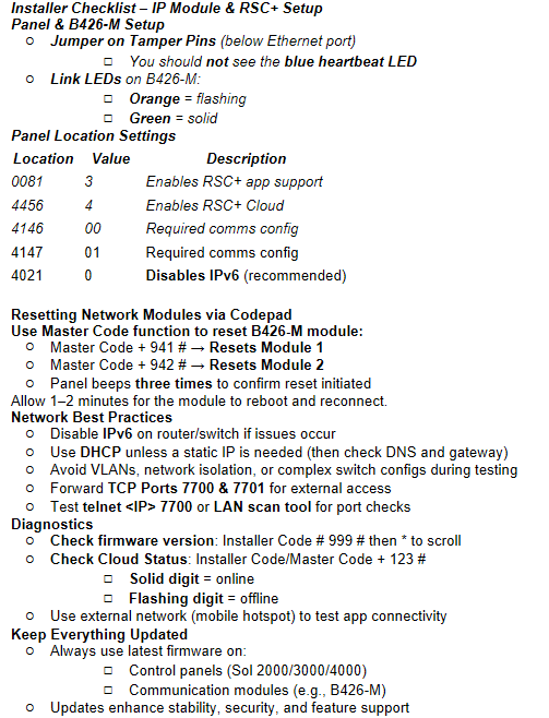 Below notes are for setting up the B426-M IP Module to work with the RSC+ app: