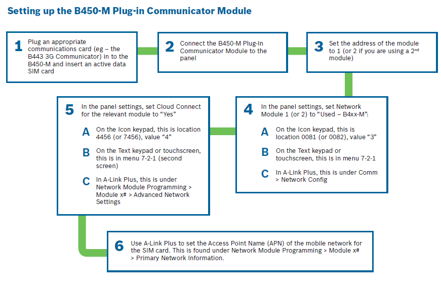 Below notes are for setting up the B450-M and B444 GSM Module to work with the RSC+ app: